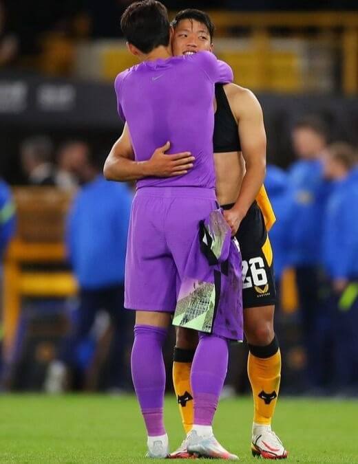 손흥민과 황희찬은 서로 유니폼을 교환과 포옹으로 뜻깊은 시간을 가졌습니다.
